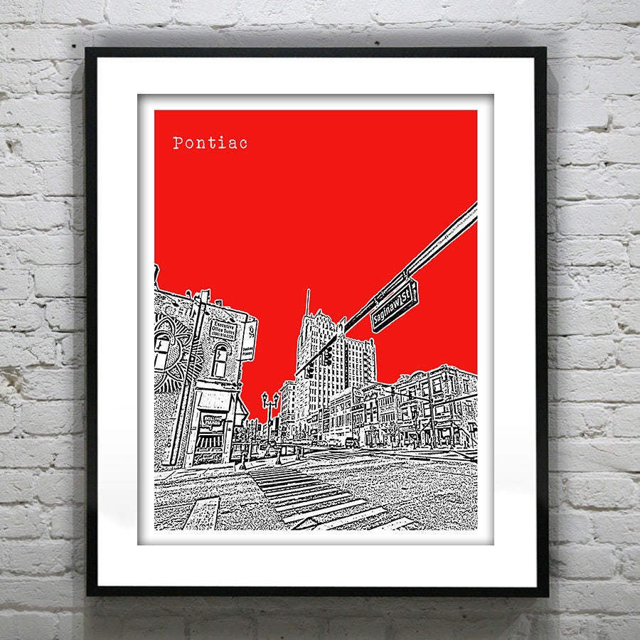 Pontiac Michigan Skyline Poster Art City Print MI Item S5009