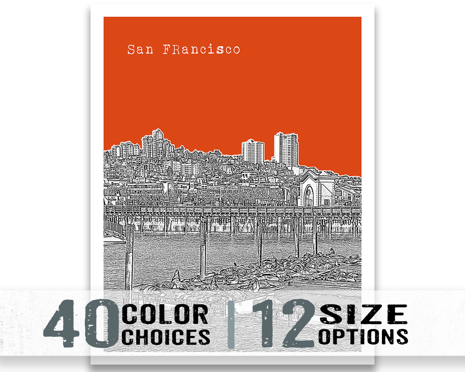 San Francisco Pier 39 Poster Art Skyline Print Item T3076